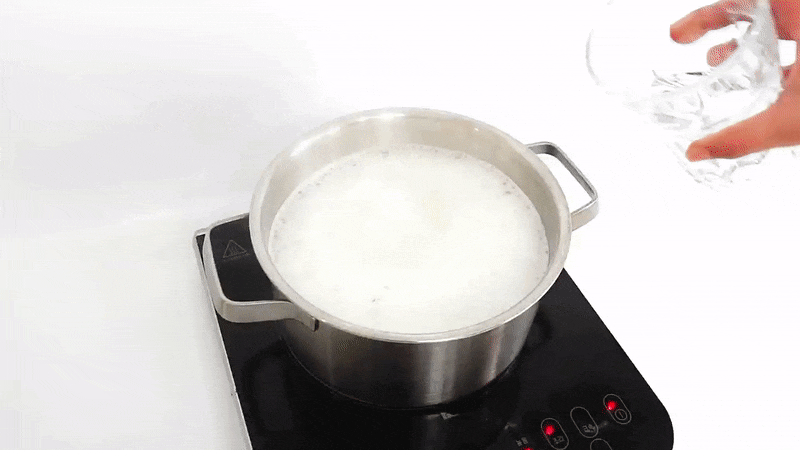 물이 넘치려 할 때쯤 냉수를 한 컵 붓고 조금만 더 삶아주세요.