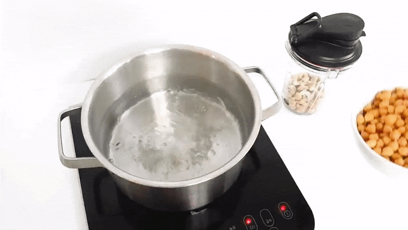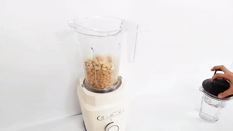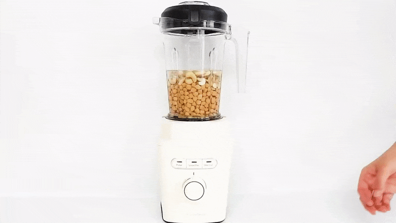 소닉 대형 컨테이너에 삶은 병아리콩과 캐슈넛, 물4컵, 소금, 설탕을 넣고 갈아주세요.